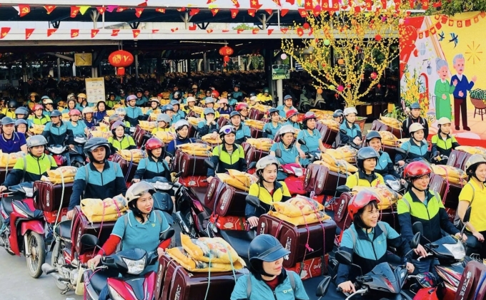 Một ngày sau, công nhân tiếp tục nhận các phần quà Tết được chằng buộc cẩn thận trên yên xe máy. Suất quà trị giá 1,8 triệu đồng gồm 10 kg gạo Thái đỏ, 3 kg gạo nếp cái hoa vàng, 4 hộp bánh, 3 chai nước mắm cá cơm, một thùng bia, một tập bao lì xì may mắn cùng 500.000 đồng tiền mặt dành cho người thân của lao động. Ngoài ra, mỗi người nhận thêm một thùng nhựa cỡ lớn để thu gom rác, kèm lời nhắn bảo vệ môi trường. Hai ngày trước đó, công nhân được dặn chuẩn bị 4 sợi dây để chằng quà về, nhà máy cũng bổ sung dây chằng nhằm đảm bảo an toàn khi vận chuyển.