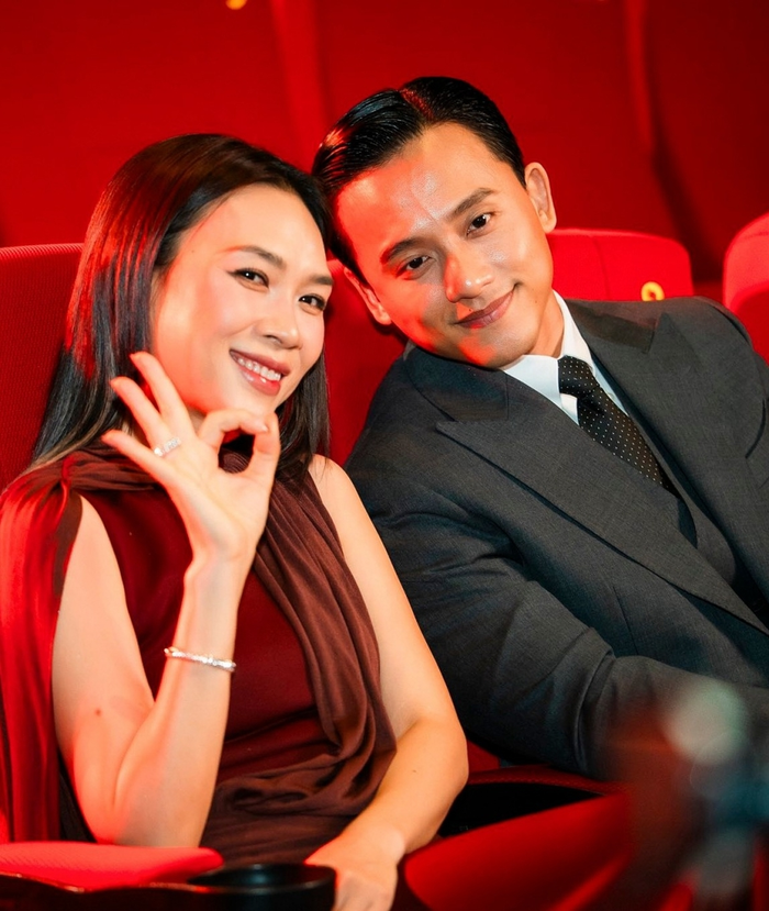 Mỹ Tâm và Mai Tài Phến trong buổi chiếu đặc biệt giới thiệu phim Tài đến giới truyền thông, bạn bè.
