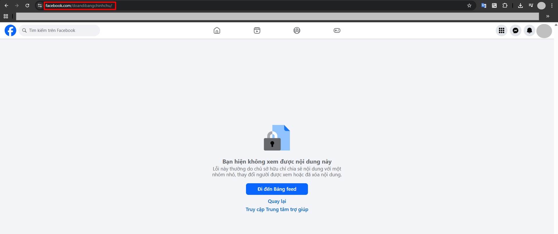 Cụ thể, không thể tìm thấy tài khoản Facebook 1,9 triệu người theo dõi và có tick xanh của Đoàn Di Băng nữa. Khi truy cập vào đường link tài khoản của cô, kết quả trả về là: “Bạn hiện không xem được nội dung này”.