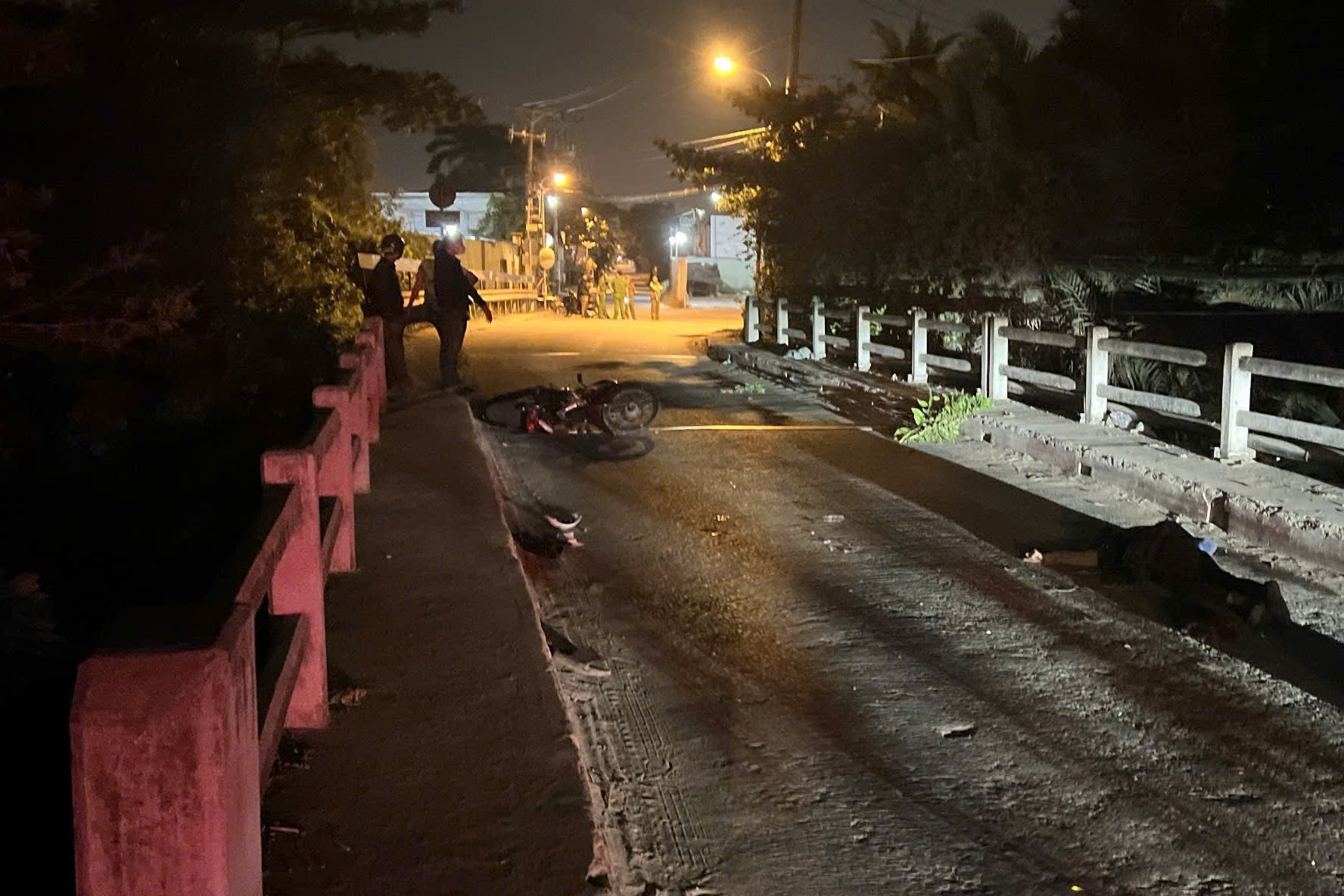 Công an TP.HCM điều tra vụ phát hiện nam thanh niên tử vong trên cầu Chùm Chụp, đường Lò Lu, phường Long Phước, TP.HCM cạnh chiếc xe máy bị hư hỏng.