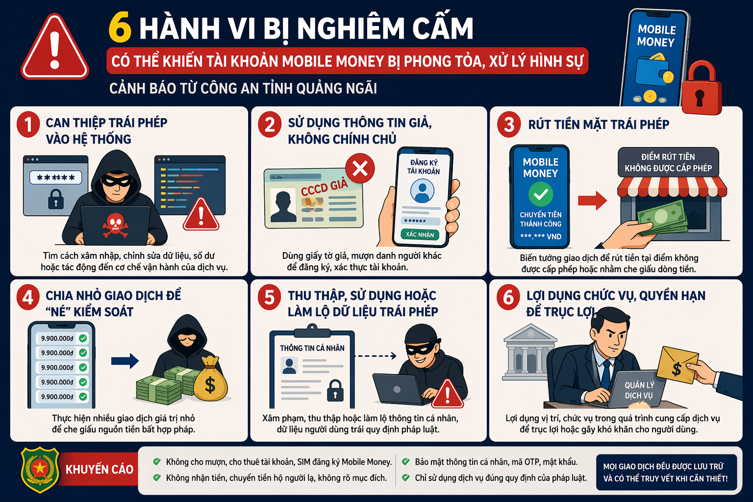 Theo Công an tỉnh Quảng Ngãi, việc tuân thủ quy định và nâng cao cảnh giác là yếu tố quan trọng để bảo vệ tài sản và tránh các hệ quả pháp lý khi sử dụng dịch vụ Tiền di động.