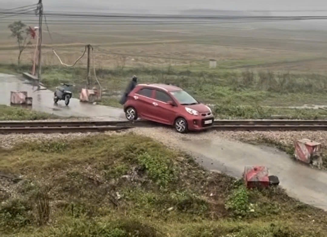 Đoàn tàu AH1 đang di chuyển thì bất ngờ bắt gặp một ô tô chết máy, đứng chắn giữa đường ray. Rất may, lái tàu kịp thời phanh gấp, tránh được sự cố đáng tiếc.