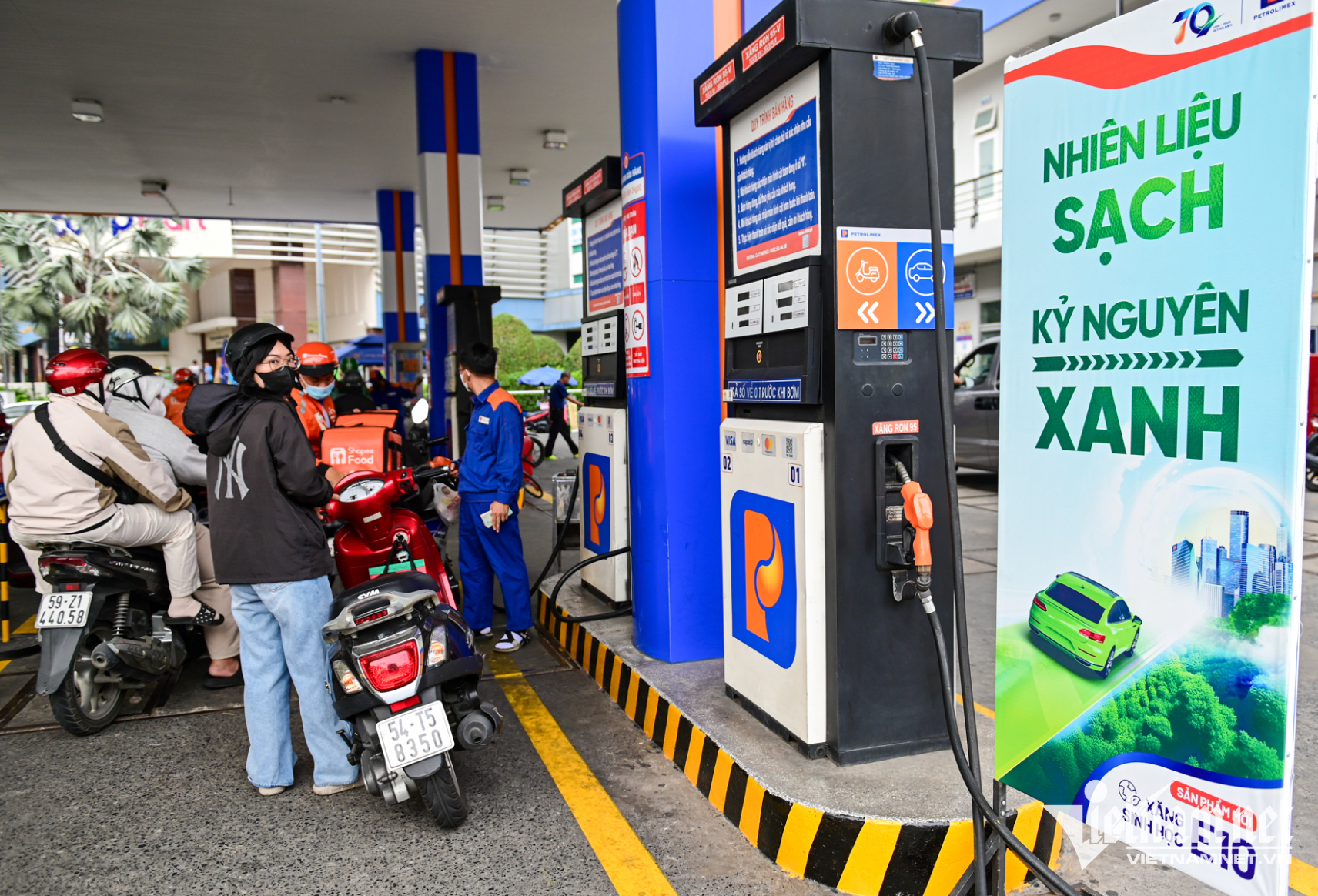 Các doanh nghiệp đang đẩy mạnh bán xăng E10 trên toàn quốc. Ảnh Nguyễn Huế
