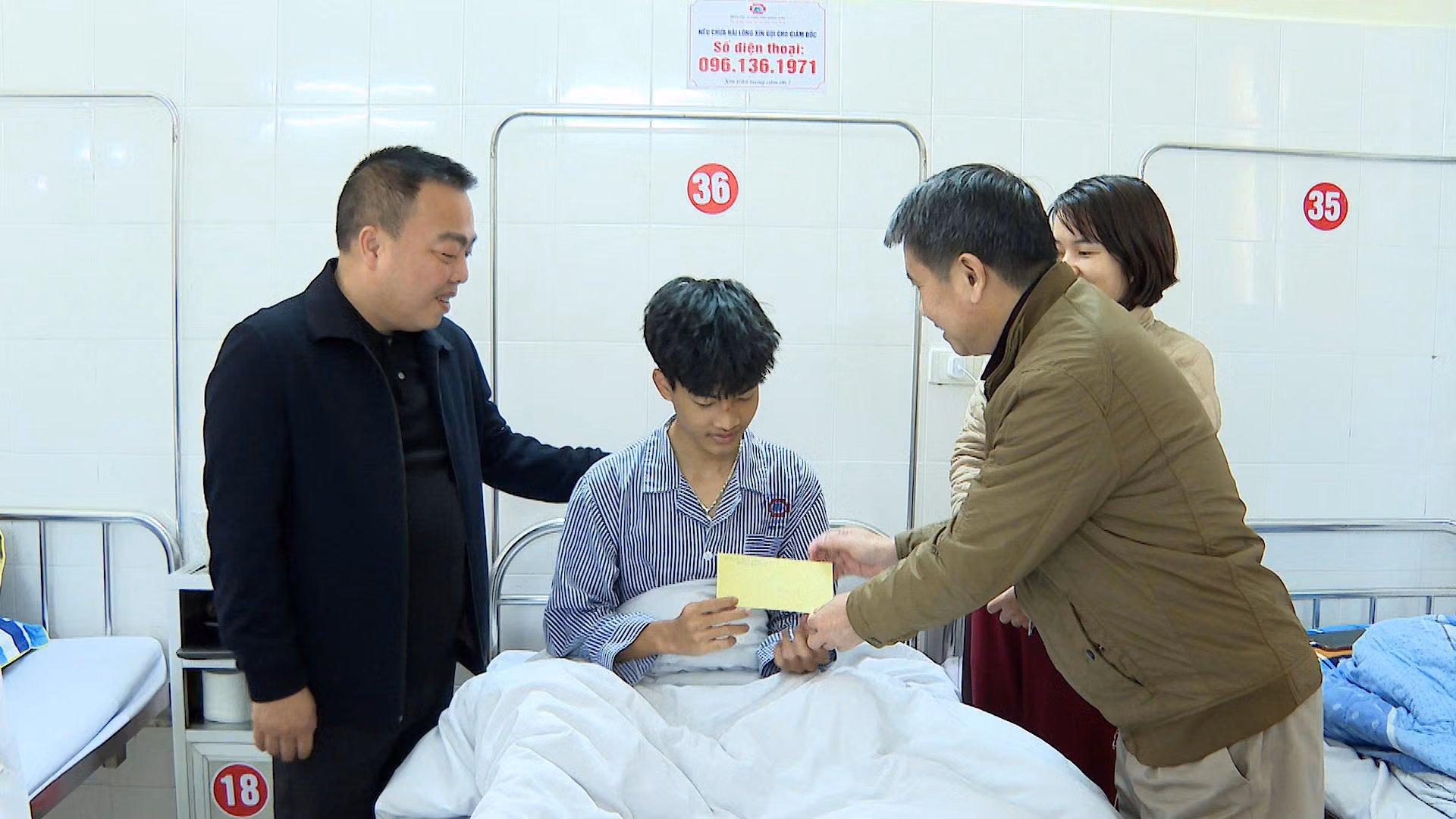 Lãnh đạo phường Hồng Gai đã ân cần thăm hỏi tình hình sức khỏe, chia sẻ với gia đình những lo lắng, ảnh hưởng về tinh thần và việc học tập của cháu Nguyễn Đức Kiên sau sự việc.