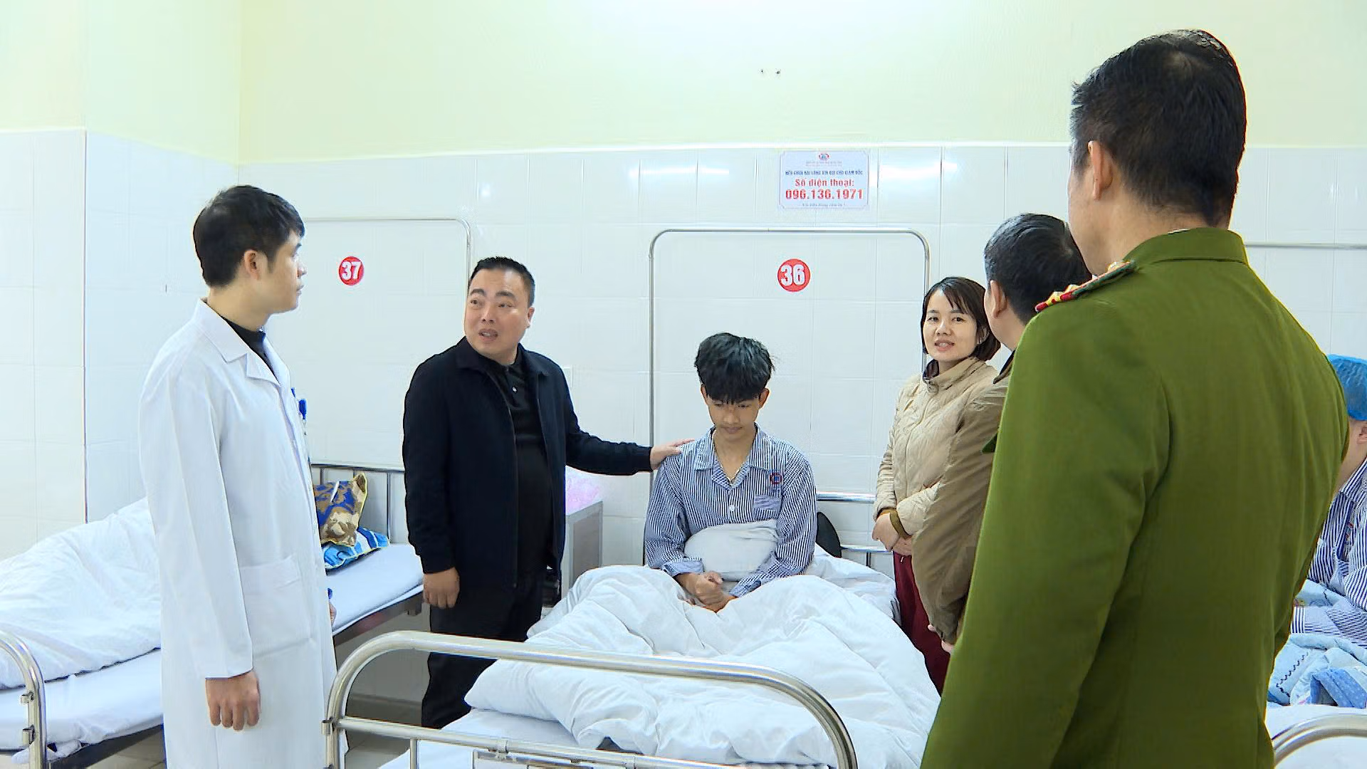Lãnh đạo phường Hồng Gai thăm hỏi, động viên cháu Nguyễn Đức Kiên – nạn nhân bị hành hung sau va chạm giao thông.