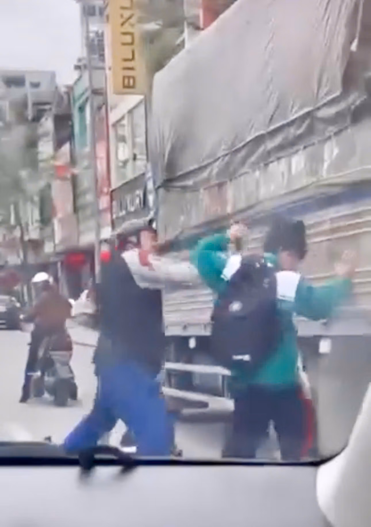 Hình ảnh từ đoạn video quay cảnh người đàn ông hành hung học sinh sau va chạm giao thông.