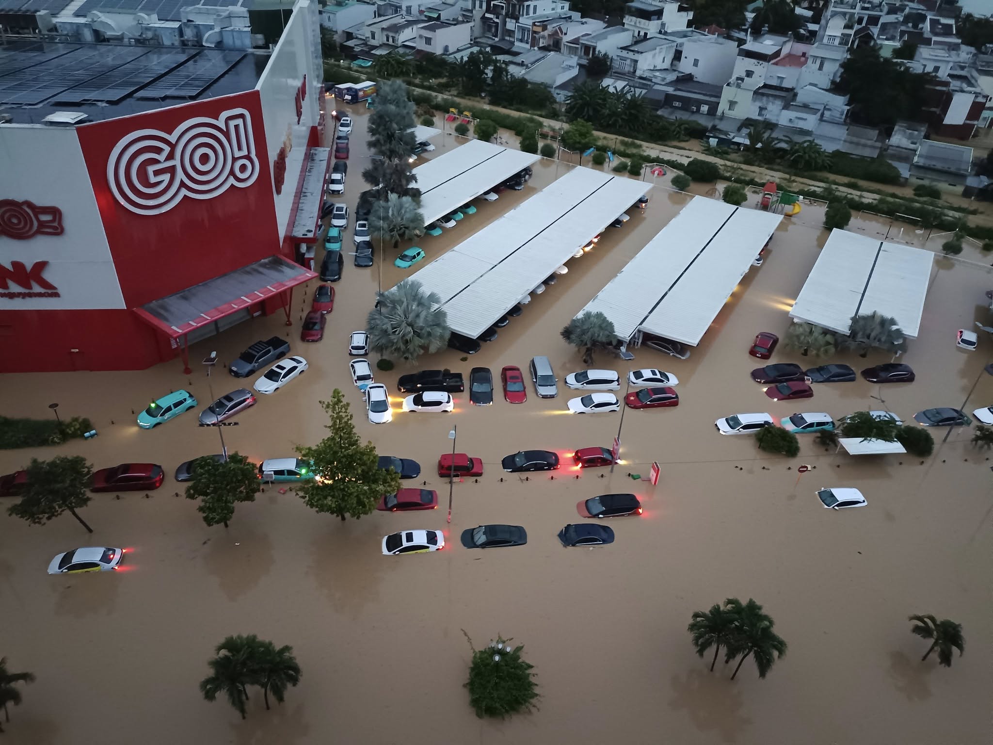 Hàng loạt ôtô bị lũ nhấn chìm ở Nha Trang