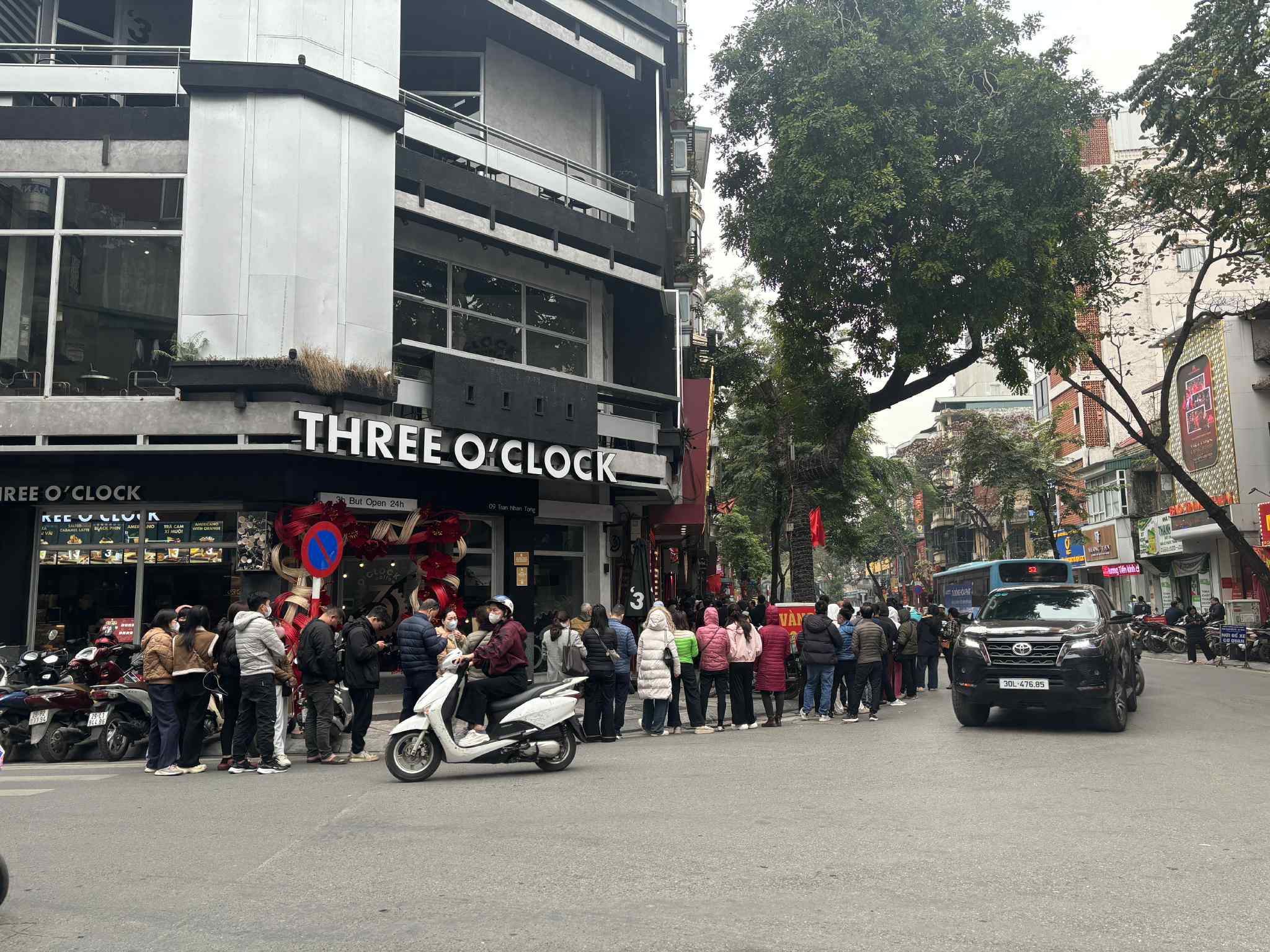 Cảnh tượng đông đúc trên phố Trần Nhân Tông sáng 3/2/2026 (Ảnh: Mai)