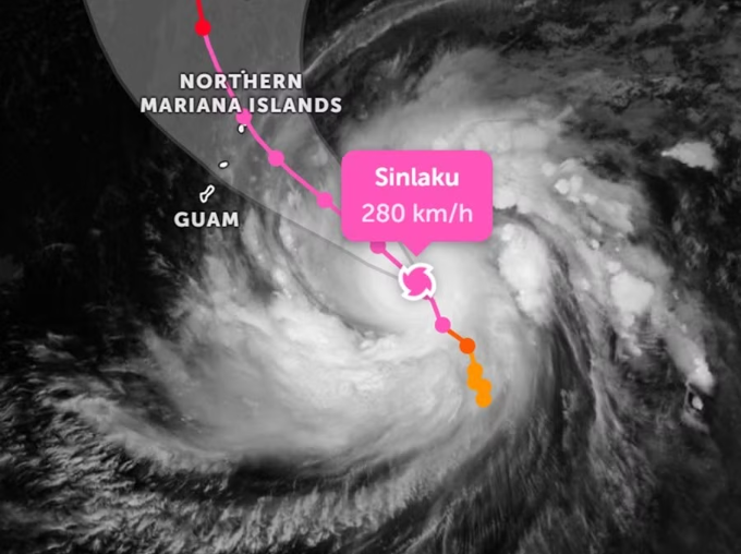 Theo trang Guam Pacific Daily News, siêu bão Sinlaku đang di chuyển chậm về phía Quần đảo Bắc Mariana.