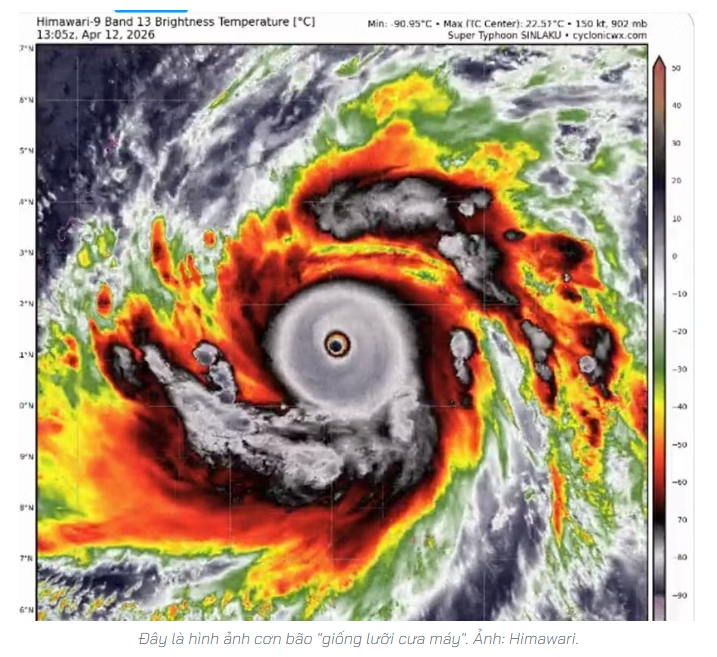 Tối 12/4, Trung tâm Cảnh báo Bão Liên hợp (JTWC) của Mỹ đã nâng Sinlaku lên cấp siêu bão, với sức gió 280 km/h (vượt xa cấp 17). Theo Trung tâm Dự báo Khí tượng Thủy văn Quốc gia nước ta, Sinlaku chính thức là cơn bão mạnh nhất thế giới năm 2026, tính đến thời điểm này, "soán ngôi" bão Maila.