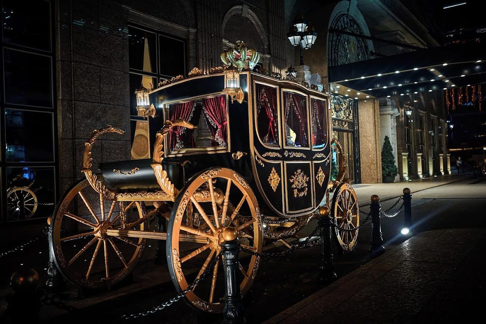 Cỗ xe ngựa dát vàng bên ngoài khách sạn. Ảnh: Khách sạn Grand Emperor