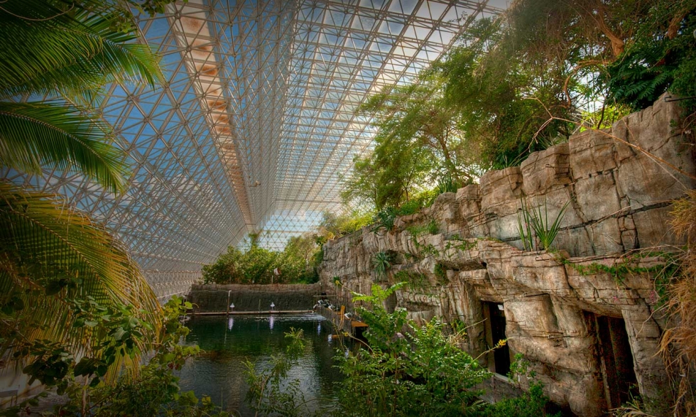 Nhìn từ bên ngoài, công trình trông như một nhà kính khổng lồ; nhưng bên trong, nó là một thế giới mô phỏng phức tạp, bao gồm các môi trường thiên nhiên đa dạng như đại dương, sông, núi, rừng mưa nhiệt đới, sa mạc và đầm lầy. Hơn 3.000 loài động thực vật cùng 1.000 loài vi sinh vật đã được đưa vào, cùng với hệ thống tạo mưa nhân tạo, nhằm đạt được khả năng tự đổi mới thông qua chu trình sinh thái khép kín.