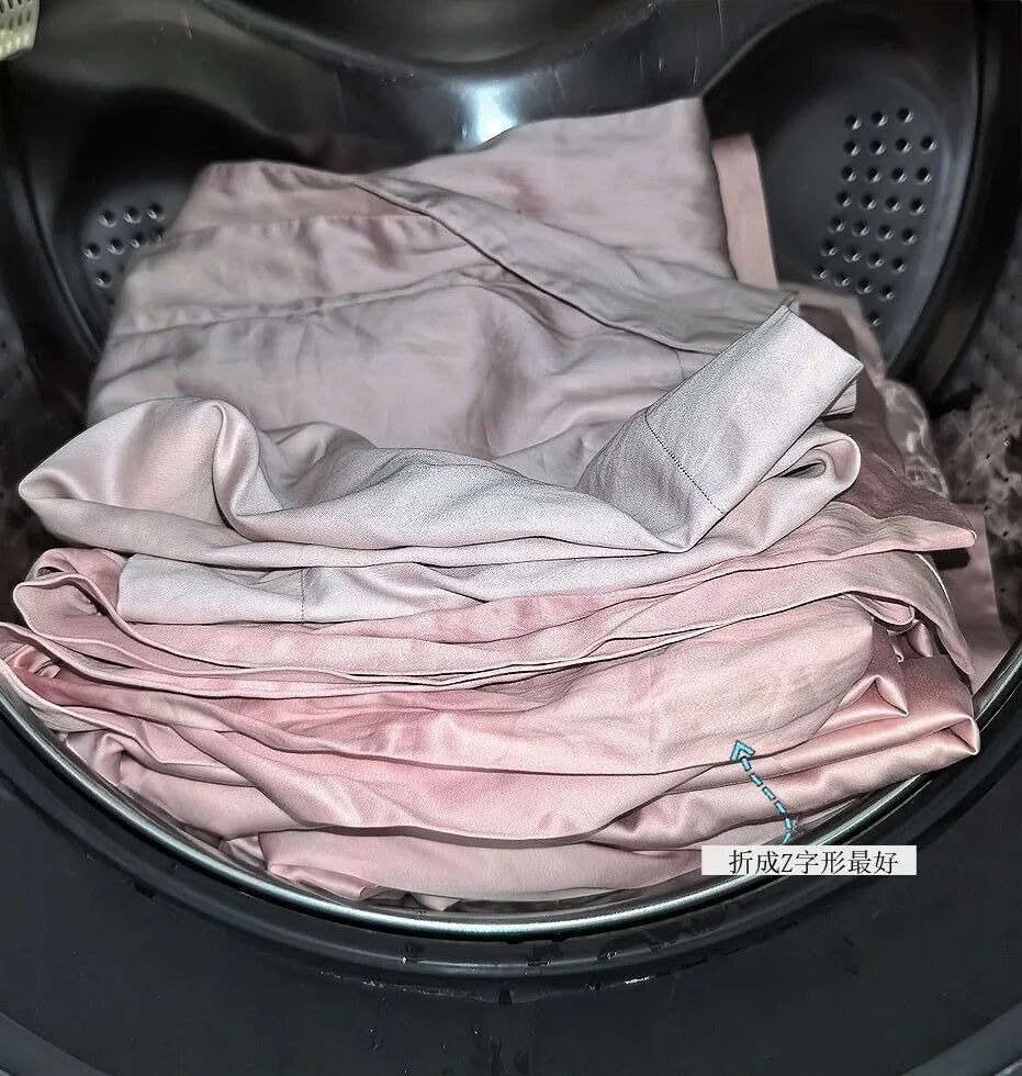 Sự thật, ga giường, chăn mỏng, vỏ chăn nếu bị vo thành cục khi cho vào máy sẽ không thể giặt sạch. Bên ngoài bị mài mòn, bên trong lại không thấm nước. Cách đúng là giặt riêng đồ lớn, gấp lỏng, tốt nhất theo hình chữ Z để nước dễ luân chuyển. Với áo khoác dày hoặc áo lông vũ, cần kéo khóa, lộn trái trước khi giặt để tránh hỏng máy và hỏng đồ.