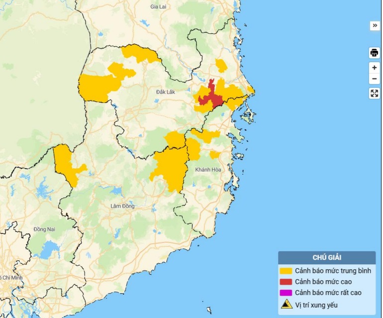 Địa phương còn ngập nhiều nhất là Đắk Lắk, cụ thể 4 xã, phường đang ngập là phường Hòa Xuân, phường Đông Hòa; xã Hòa Thịnh, xã Hòa Mỹ (trong đó, nhiều khu vực thuộc xã Hòa Thịnh, Hòa Xuân vẫn đang ngập sâu).