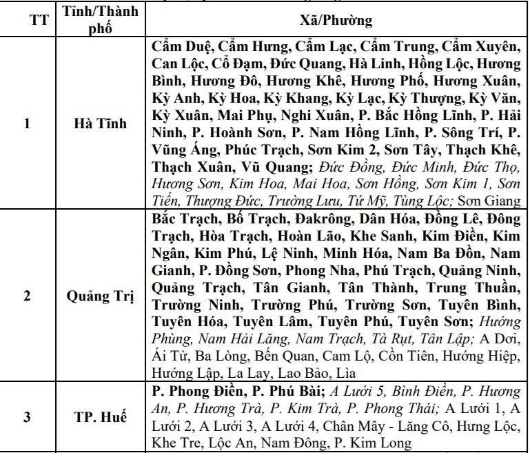 Cảnh báo cấp độ rủi ro thiên tai do lũ quét, sạt lở đất, sụt lún đất do mưa lũ hoặc dòng chảy: Cấp 1; Hà Tĩnh, TP. Huế, TP Đà Nẵng: Cấp 2.