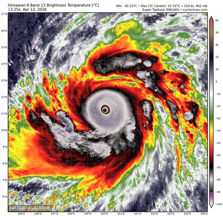 Hiện tại, Sinlaku cũng là cơn bão mạnh nhất thế giới trong năm 2026, với áp suất trung tâm 920 hPa (tính đến thời điểm hiện tại), vượt qua bão Maila ở khu vực Úc (924 hPa)", cơ quan khí tượng nhận định.
