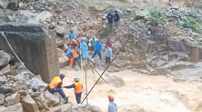 Giữa mưa lũ và sạt lở ở vùng cao Đà Nẵng, cô giáo mang thai 37 tuần được lực lượng chức năng dựng cầu tạm, dìu vượt suối lũ dữ ra khỏi vùng nguy hiểm an toàn.