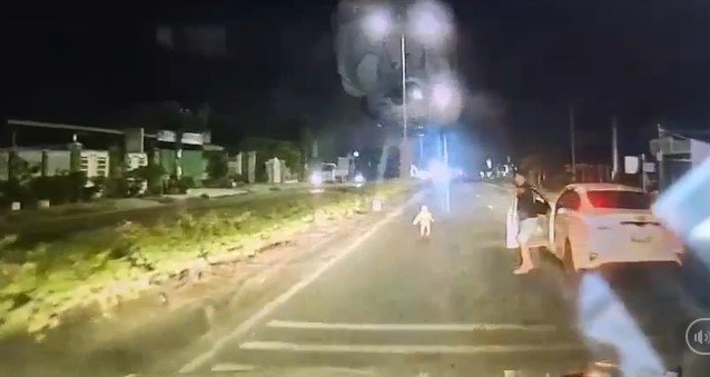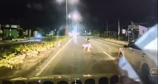 Mạng xã hội mới đây lan truyền đoạn đoạn quay trích xuất từ camera hành trình của một ô tô ghi lại cảnh tượng thót tim. Trong đoạn đoạn quay, khi ô tô đang di chuyển trên đường tỉnh lộ vào lúc trời tối thì bất ngờ thấy một xe ô tô con đi phía trước dừng giữa đường, đồng thời có một cháu bé khoảng 3 tuổi cũng chạy ra giữa đường, ngay phía trước ô tô.