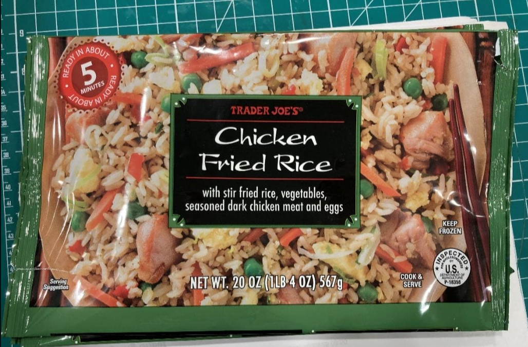 Sản phẩm thu hồi thứ hai, được phân phối đến các cửa hàng Trader Joe's trên khắp Mỹ, là cơm rang gà Trader Joe's với cơm rang, rau củ, thịt gà đùi tẩm gia vị và trứng, được đóng gói trong túi nhựa, với hạn sử dụng tốt nhất trước ngày từ 9/9/2026 đến 17/11/2026. Trên bao bì sản phẩm có ghi số cơ sở sản xuất P-18356 bên trong dấu kiểm định của USDA.
