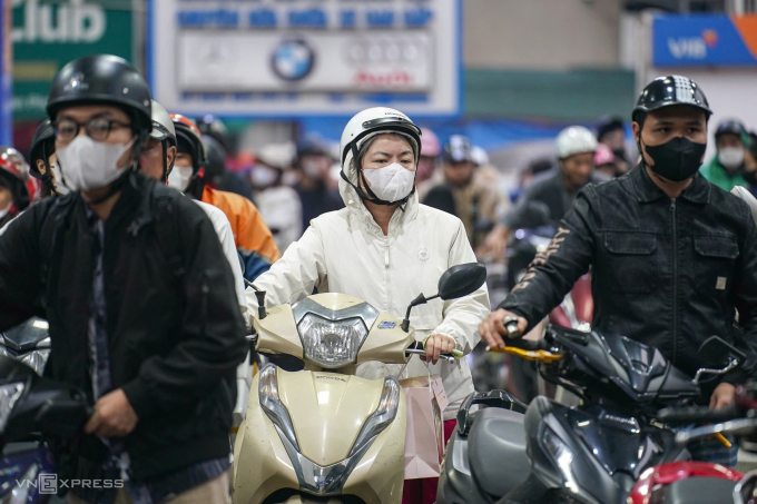 Người dân xếp hàng mua xăng ở Hà Nội, ngày 6/3. Ảnh: Hoàng Giang