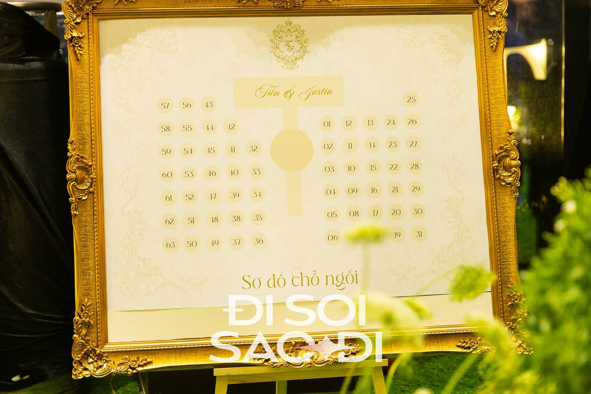 Ngay trước giờ diễn ra tiệc, menu cưới đã lộ diện và nhanh chóng thu hút sự chú ý. Được biết, bữa tiệc tối nay có 63 bàn với sơ đồ vị trí bàn tiệc đặt ngay tại sảnh đón để các khách mời dễ dàng tra cứu. Điều khiến nhiều người chú ý là toàn bộ thực đơn đều là những món vốn được xem là "biểu tượng" của ẩm thực xa xỉ.