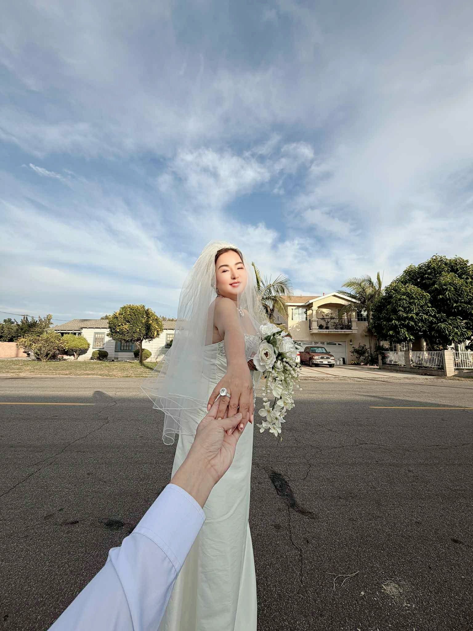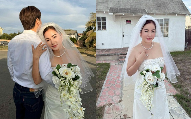 Hình ảnh Thúy Nga mặc váy cưới bên "chú rể" giấu mặt