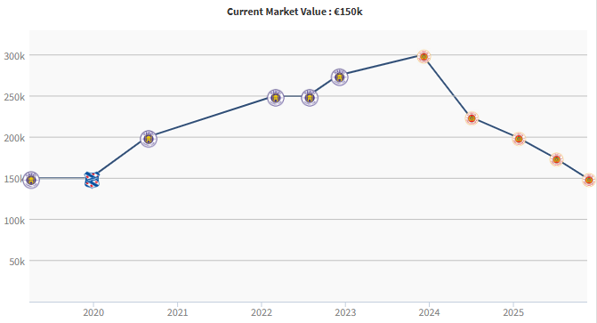 Biểu đồ mức định giá của Đoàn Văn Hậu theo Transfermarkt