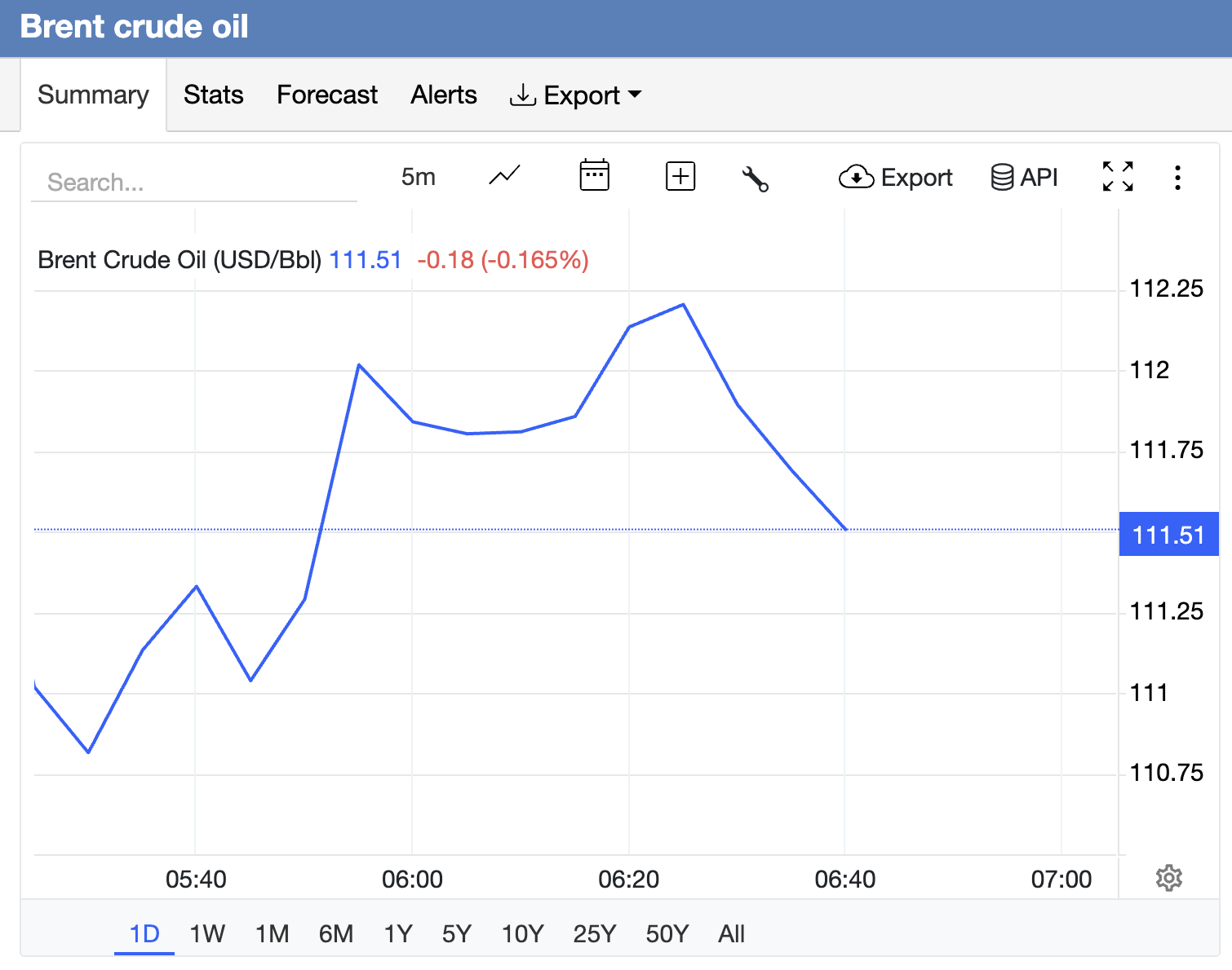 Giá dầu thô Brent biển Bắc bán ra ở mức 111,5 USD/thùng, giảm 0,68 USD/thùng, tương đương mức giảm 0,61% so với chốt phiên thứ 6.