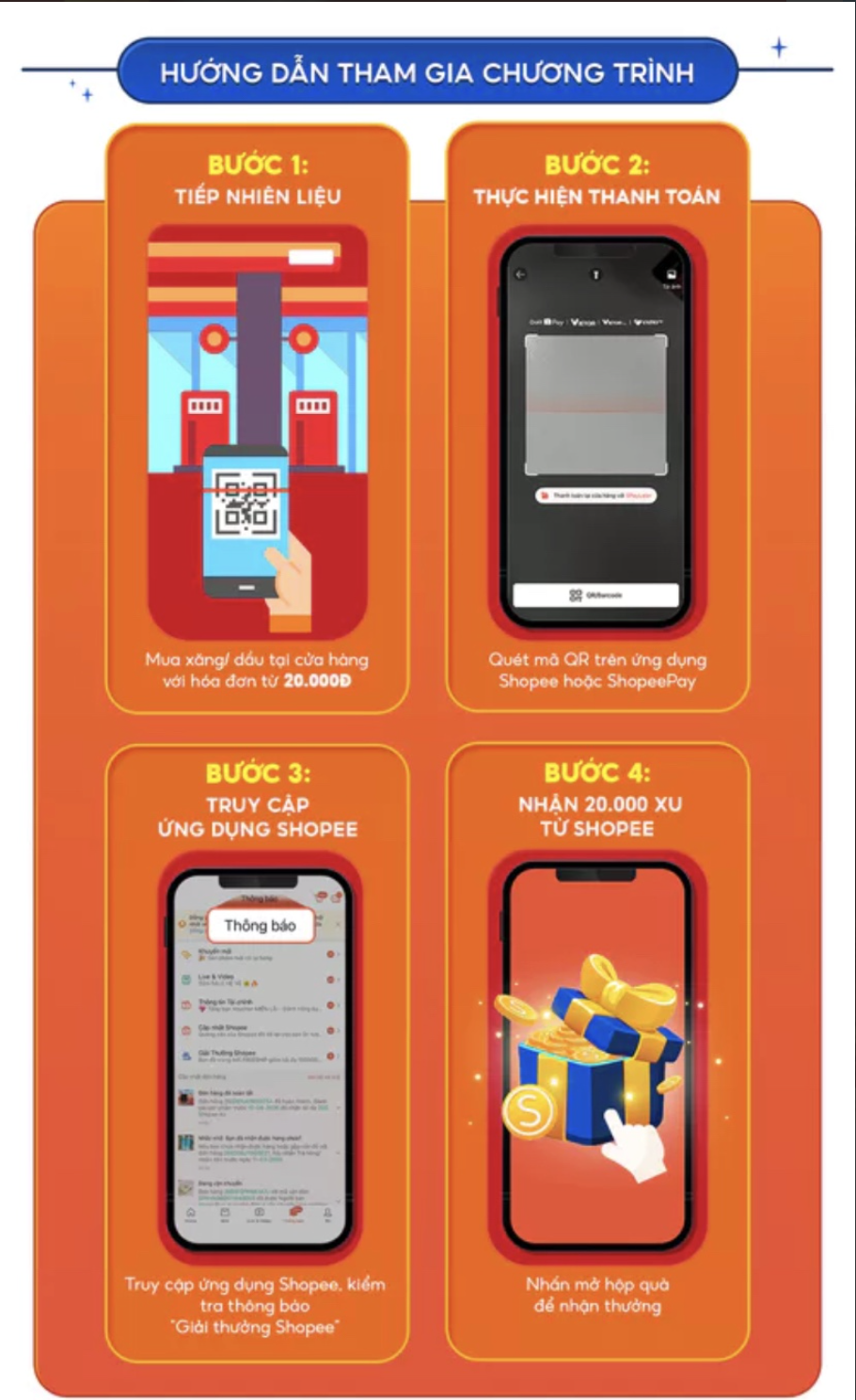 Mới đây, Shopee phối hợp cùng ví điện tử ShopeePay triển khai chương trình hoàn tiền khi mua xăng, áp dụng từ 15h ngày 16/3/2026 đến hết ngày 28/3/2026. Theo chương trình, người dùng thanh toán hóa đơn từ 20.000 đồng trở lên tại các cây xăng hợp lệ bằng ShopeePay sẽ được hoàn 20.000 đồng dưới dạng xu tích lũy vào tài khoản. Mỗi tài khoản được áp dụng ưu đãi một lần mỗi ngày trong thời gian diễn ra chương trình.