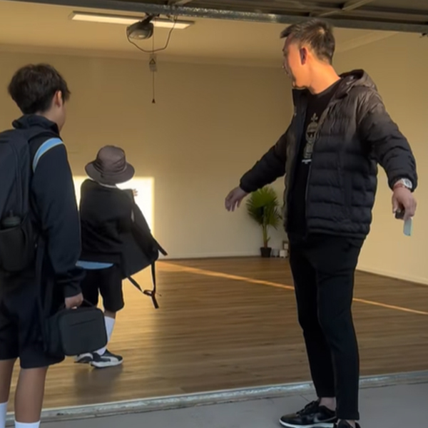 Cô chia sẻ khoảnh khắc chồng đưa con đi học ở Úc.