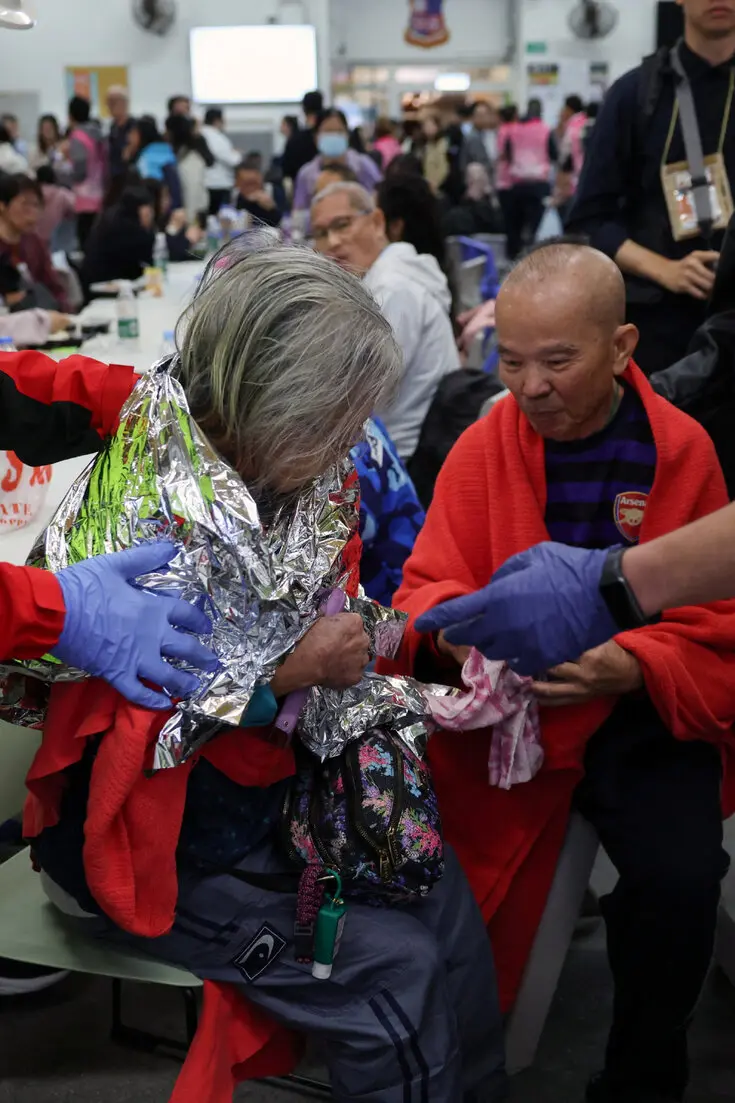 Nhà tạm trú tại Trung tâm Thể thao đường Tung Cheong đã kín chỗ và những cư dân không thể vào được được khuyến nghị chuyển sang các điểm trú ẩn khác. Cảnh sát đang hỗ trợ một số cư dân tìm kiếm người thân mất liên lạc bằng loa phóng thanh.