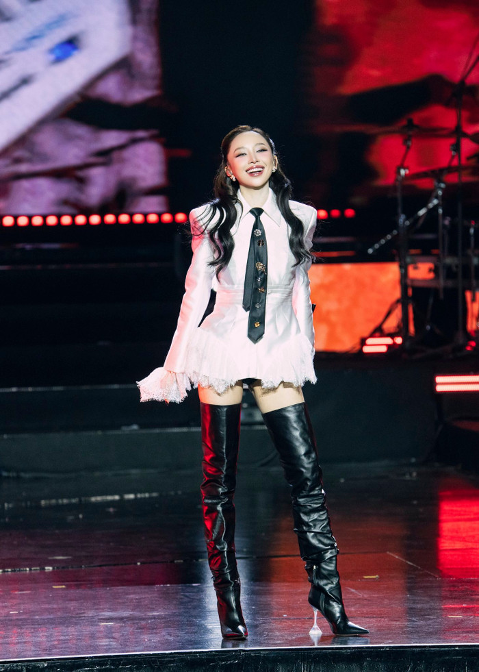 Tóc Tiên nở nụ cười rạng rỡ khi đứng trên sân khấu. Ảnh: FBNV
