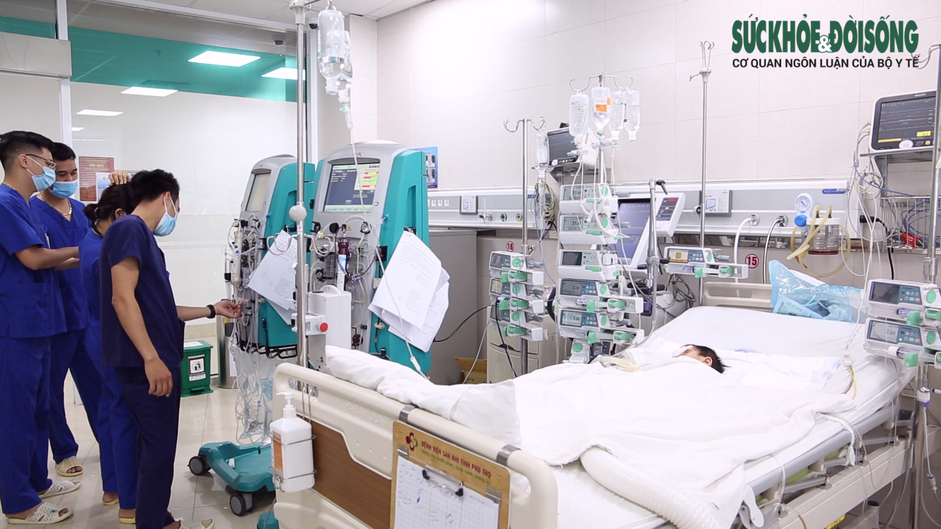 Hình ảnh bé khi được thực hiện siêu lọc máu.