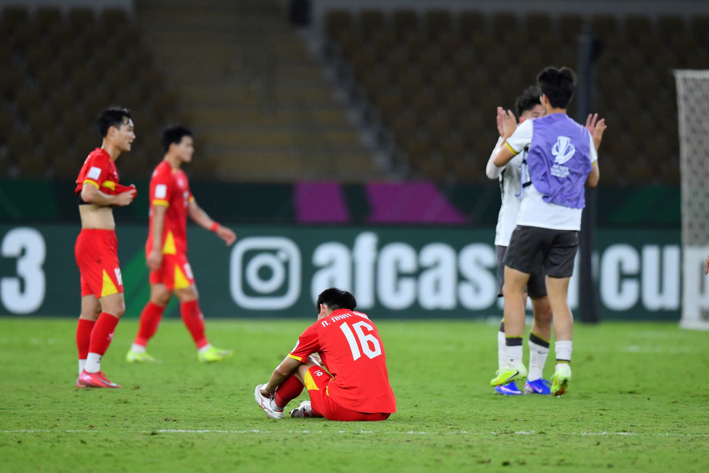 Nỗi buồn của các cầu thủ U23 Việt Nam khi lời hứa về một chiến thắng không đạt được. (Ảnh: AFC)