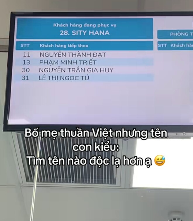 Bức ảnh là màn hình chờ có danh sách tên các em bé như Nguyễn Thành Đạt, Lê Thị Ngọc Tú... Song có một cái tên rất độc lạ khiến ai cũng phải chú ý đó chính là Sity Hana.