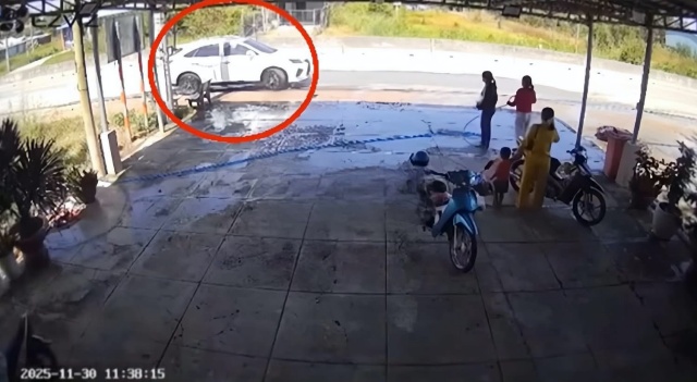 Theo nội dung camera an ninh ghi lại thì vụ việc xảy ra vào khoảng 11h38' trưa ngày 30/11. Cụ thể vào thời điểm này, một người đàn ông điều khiển ô tô mảu trắng đi ngang qua ngôi nhà có một nhóm - 3 người phụ nữ, 1 em bé, đang đứng phía trước.