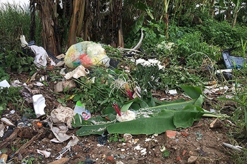 Một phụ nữ khác cho hay, cách đây khoảng 10 ngày khi đi nhặt phế liệu chị thấy chiếc bao tải khá to ở bụi chuối. "Tôi kéo bao tải ra ngoài xem có gì nhưng nghi là chứa đất vì nặng quá nên sau đó không mở ra, chị nói và cho hay, những ngày sau đó đi qua khu này thấy mùi thối bốc lên nồng nặc.