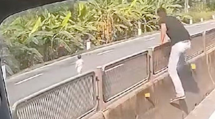 Khi đến địa phận xã Phú Lộc, anh Tố phát hiện cháu bé chui qua một khe hở ở lan can giữa đường để sang làn xe đối diện. Nam tài xế nhanh chóng dừng xe, kịp thời chạy đến bế bé giữa dòng xe cộ.