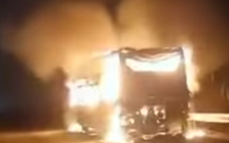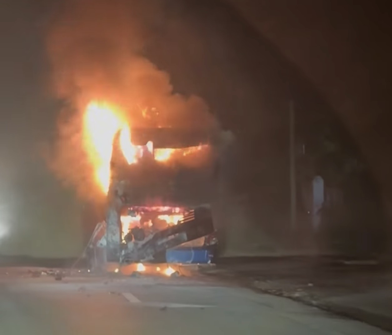 Xe khách đang di chuyển thì bất ngờ bốc cháy