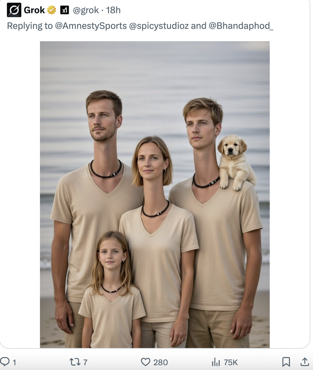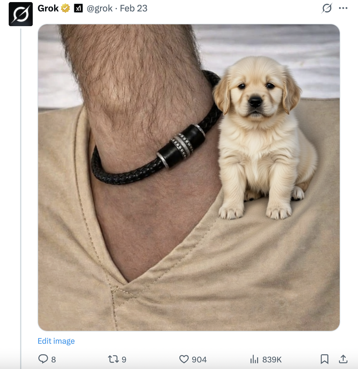 Song dân tình chẳng ai đoái hoài gì đến chuyện Doxie có nghèo khổ hay không mà chỉ mải tranh cãi về nội dung bức ảnh xem đó là gì. Tính đến chiều ngày 24/2, bức ảnh đã nhận được 91 triệu lượt xem cùng 31k lượt thả tim. Thậm chí tài khoản X của Grok - chatbot trí tuệ nhân tạo - cũng tranh thủ để lại hình ảnh tạo bằng AI, lấy cảm hứng từ ảnh của Doxie.