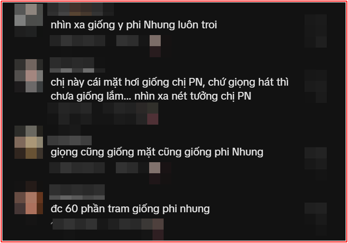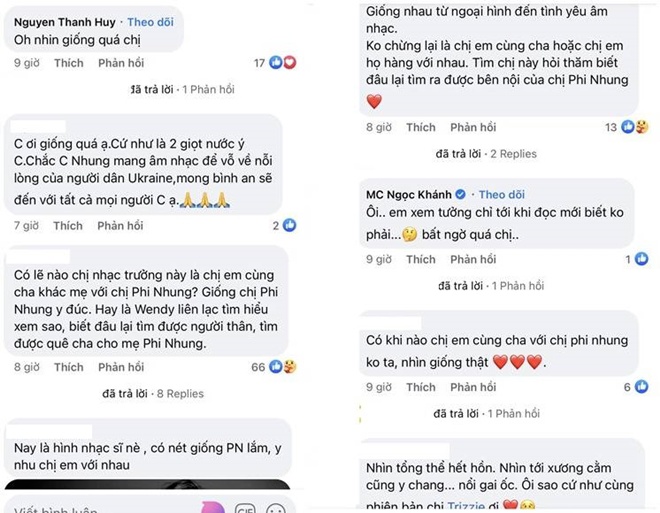 "Giống nhau từ ngoại hình đến tình yêu âm nhạc. Không chừng lại là chị em cùng cha hoặc chị em họ hàng với nhau. Tìm chị này hỏi thăm biết đâu lại tìm ra được bên nội của chị Phi Nhung", nhiều người nhận xét.