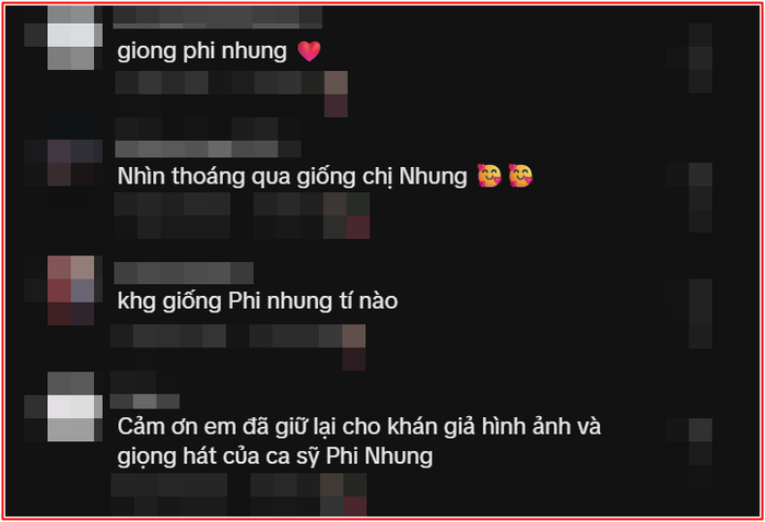 Xuất hiện trên sân khấu trong tà áo dài truyền thống cùng mái tóc đen dài, nữ ca sĩ thể hiện ca khúc trữ tình nổi tiếng, lập tức khiến nhiều người liên tưởng đến hình ảnh quen thuộc của Phi Nhung. Chưa kể, giọng hát của cô cũng mang âm sắc khá giống khi thể hiện những nốt cao, khiến khán giả không khỏi nổi da gà.