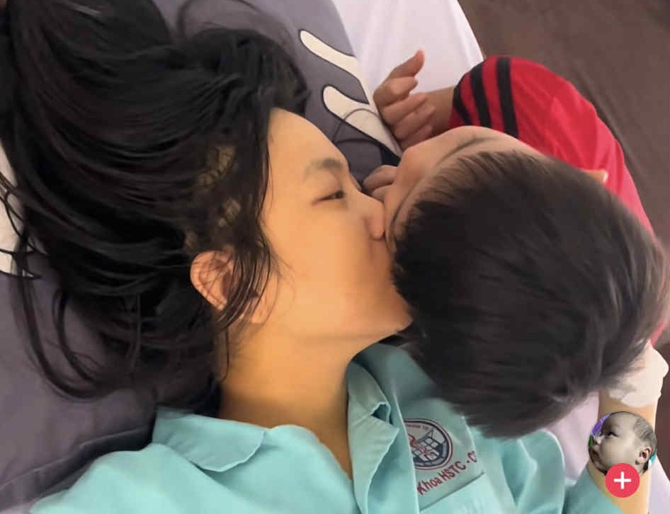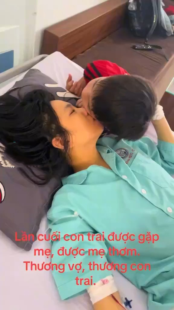 Linh cảm vợ không còn nhiều thời gian, anh Trần Minh Tuấn ghi lại khoảnh khắc chị Võ Thị Như Ý ôm hôn con trai trên giường bệnh, 9 ngày trước khi chị qua đời vì bạo bệnh.